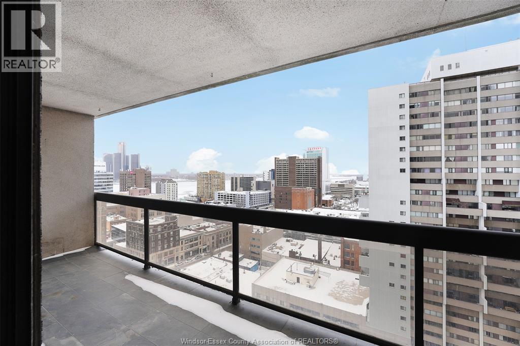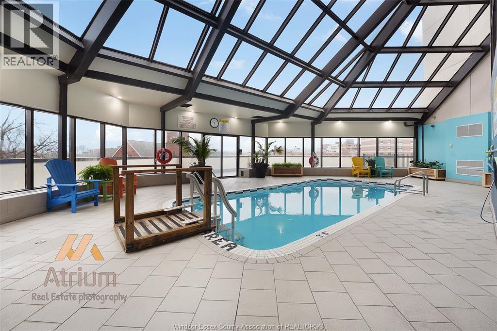 One of a kind! Professionally Designed! Waterview Condo! Located downtown Windsor! Five minute drive to tunnel to USA. Aprox.7 minute drive to Windsor University! Building has Concierge/Security. Amenities include indoor pool, sauna, gym, party room, whirlpool. Includes underground parking space and a storage locker. Very functional layout! On entry you will be greeted with a nice foyer with closet, straight ahead of you a very modern kitchen with custom two toned kitchen cabinets and sleek appliances opening up to dining room which then opens up to the very large living room with patio doors to second balcony, living room has a feature wall with a 60inch electric fireplace with remote and credenza. Tucked away down the hall you'll find a Spacious bedroom with its own balcony located beside the stunning 3 piece bath with glass shower, extended height in shower, lite heated mirror. Marble flooring in foyer and bathroom. Previous Seller when condo was previously listed in their remarks said ""unit was completely renovated and updated interior with over $70,000 in upgrades"". Condo Fee $515.00 Taxes $1970 2025. Seller has the right to accept or decline any and all offers. (id:4555)
